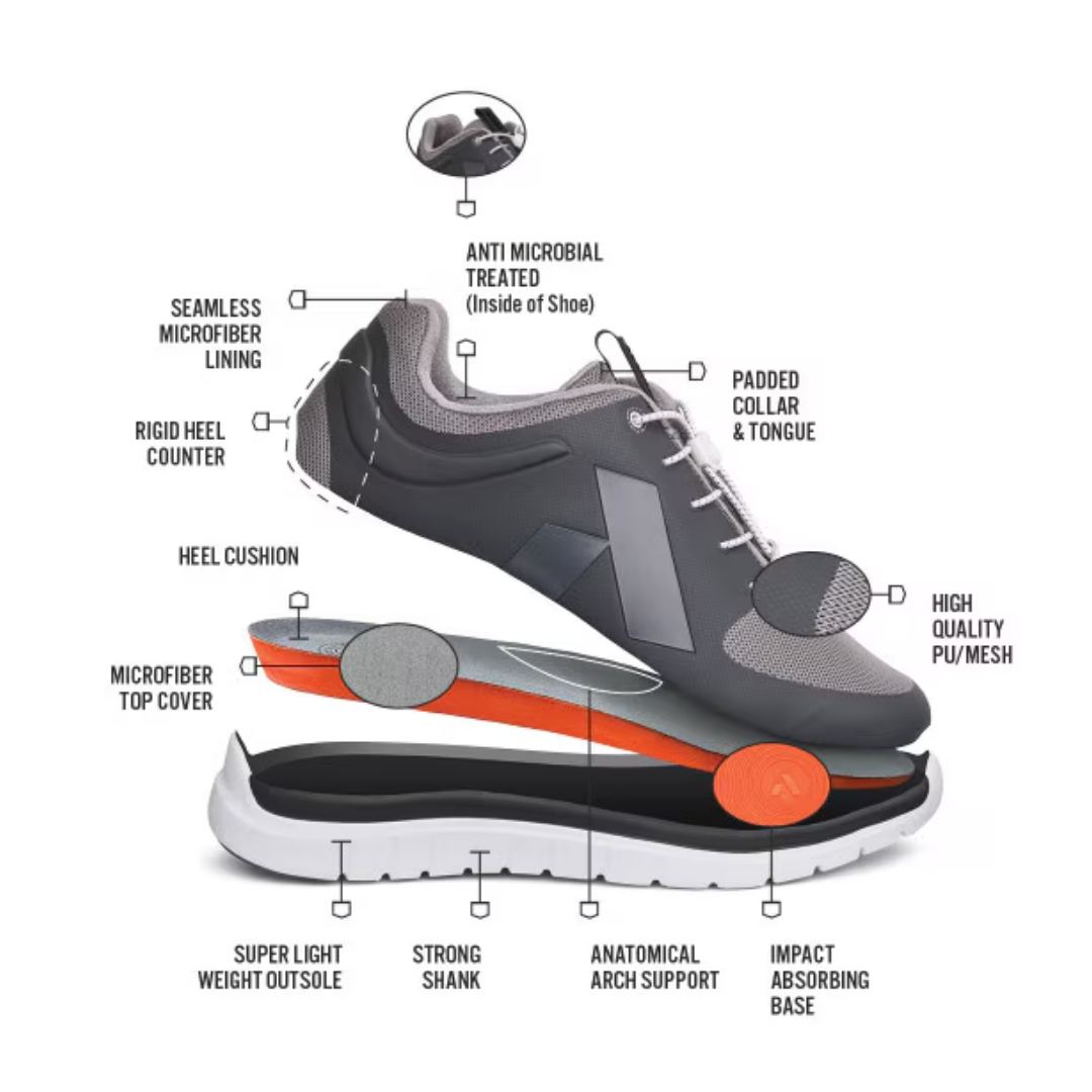 - Extra-depth construction – Accommodates custom orthotics and helps reduce pressure