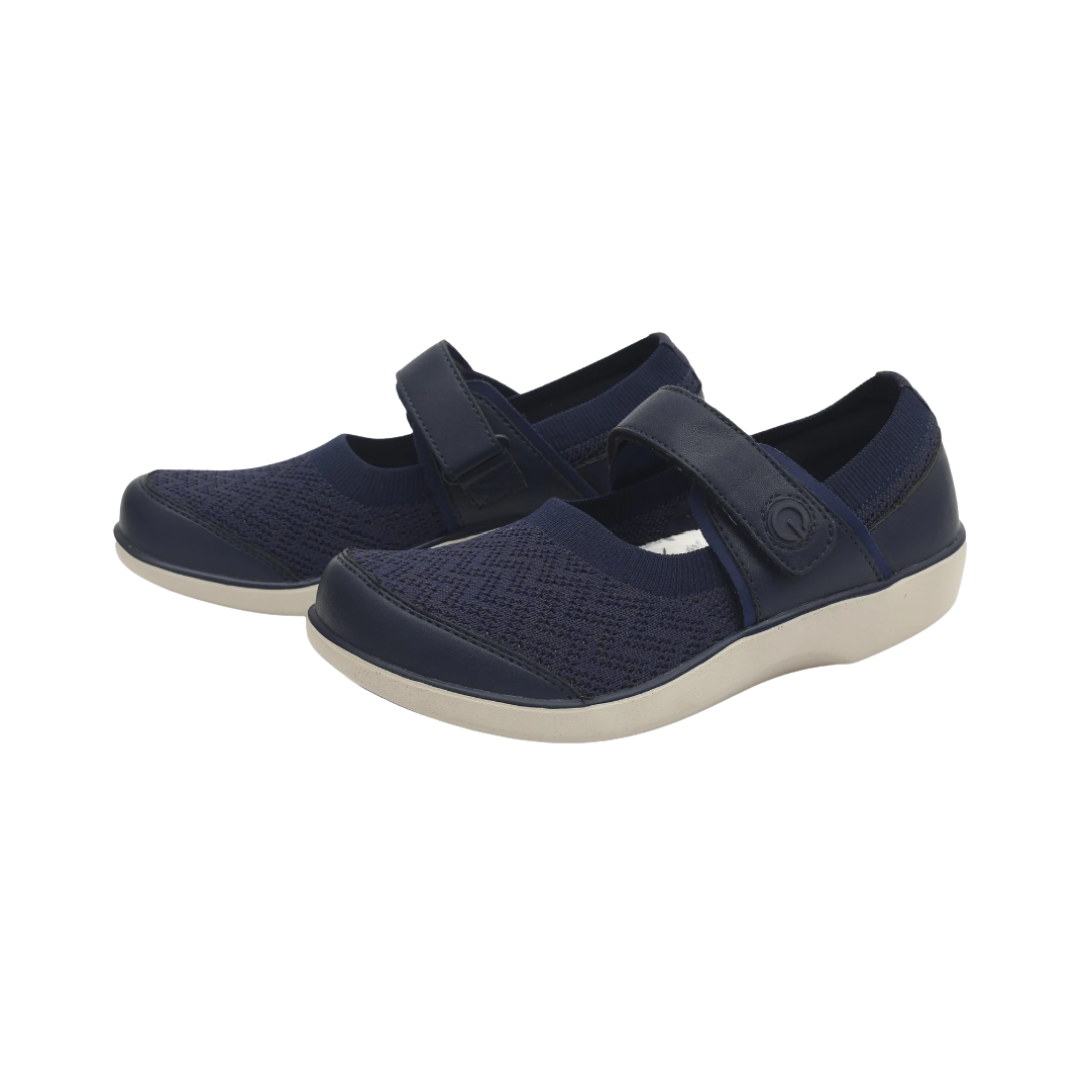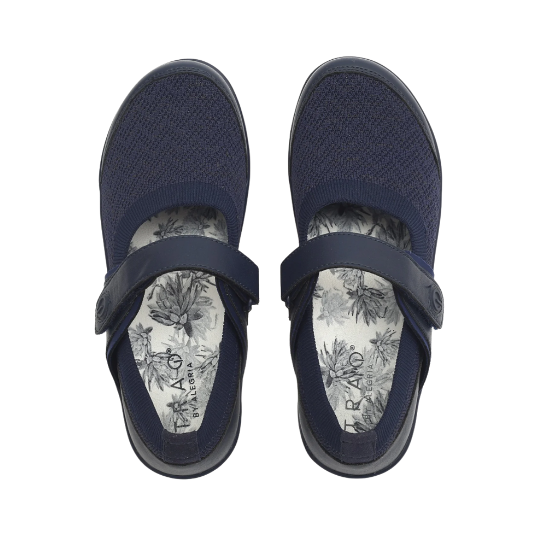 The Alegria Women’s TRAQ Qutie in Blue Multi is a slip-on shoe designed for all-day comfort, style, and step tracking technology. Featuring Alegria’s TRAQ® smart shoe system, it syncs with the TRAQ app to monitor your daily steps—helping you stay active while enjoying the lightweight feel and supportive design.