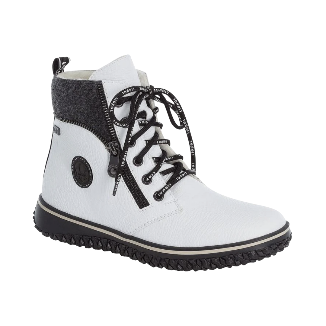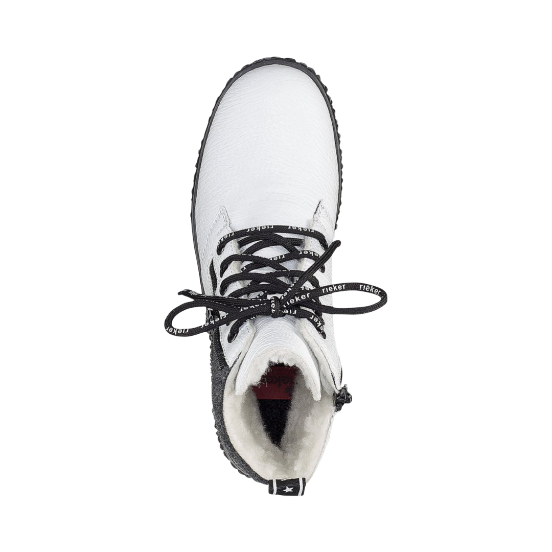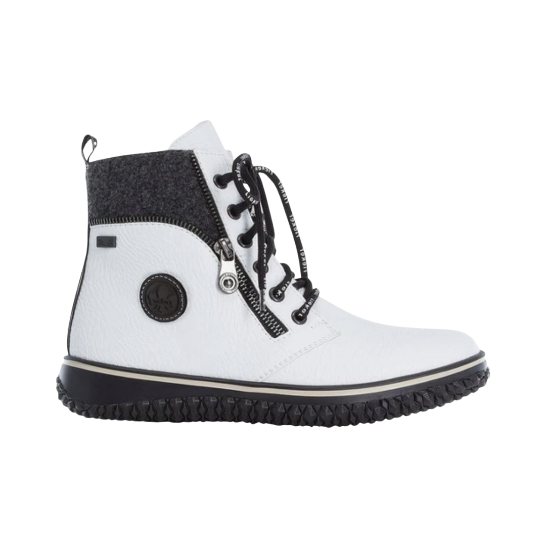 The Women’s Rieker Lace-Up Boot in White combines sleek seasonal style with dependable comfort and protection. It’s a practical yet stylish choice for daily wear, walking, and casual winter outings.