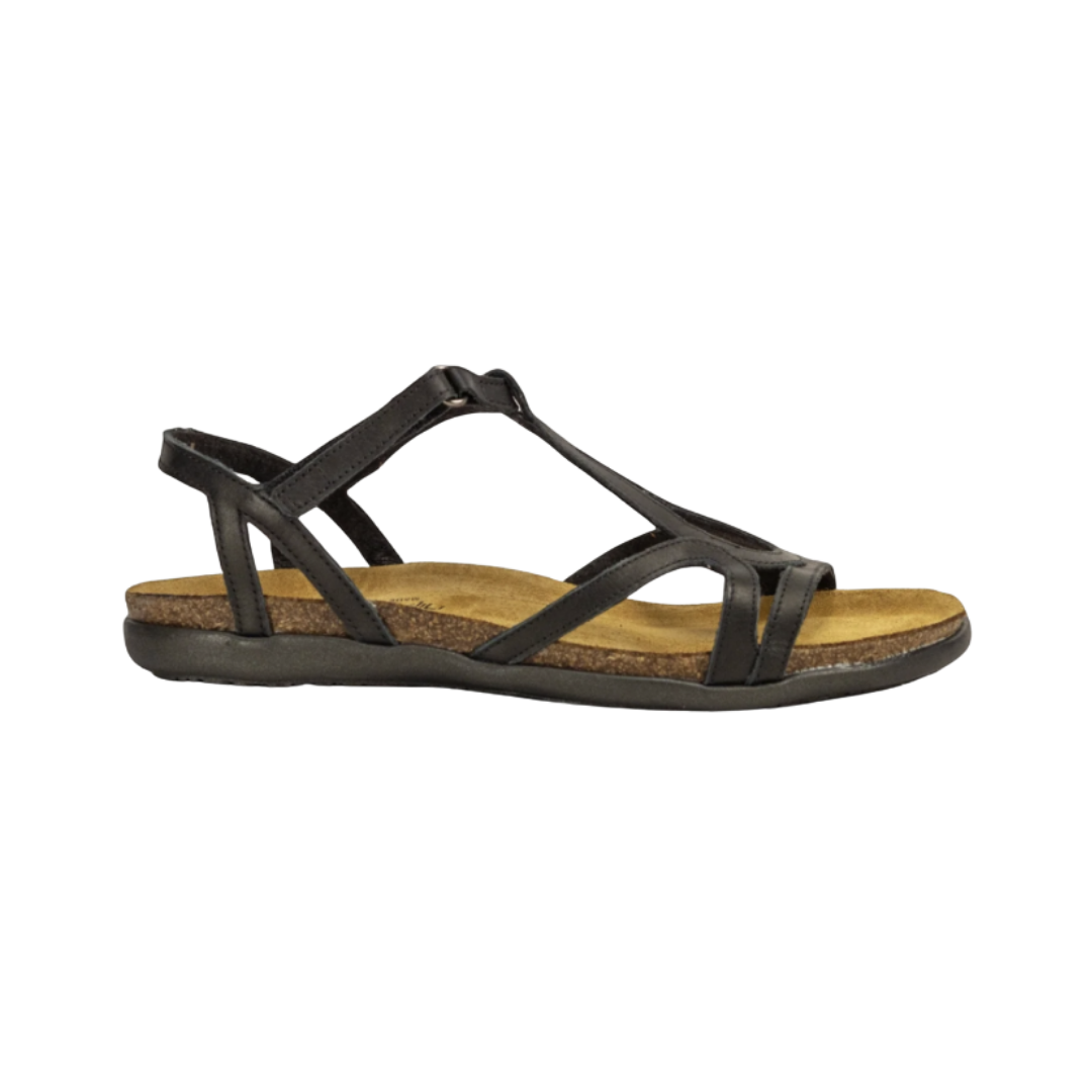 La Dorith est une sandale d'inspiration gladiateur, dotée d'une bride auto-agrippante et d'une bride arrière pour plus de stabilité et de maintien. Elle présente un design féminin à l'avant. La semelle intérieure anatomique Naot en liège et latex est enveloppée d'un daim doux et épouse la forme du pied au fil du temps. La collection Flat Elegant est dotée d'une semelle en TPR de 1,9 cm.