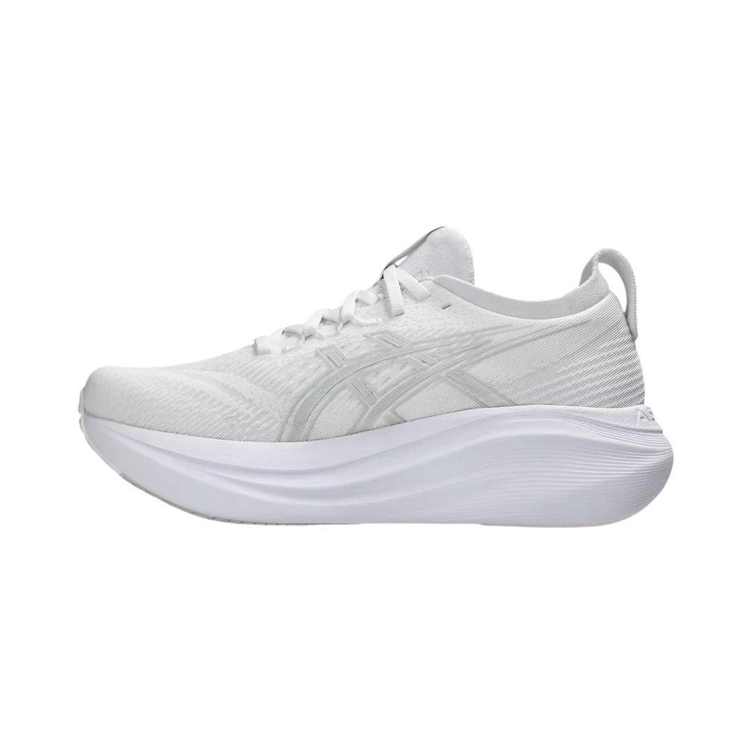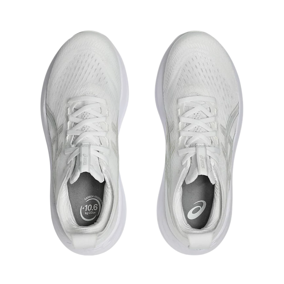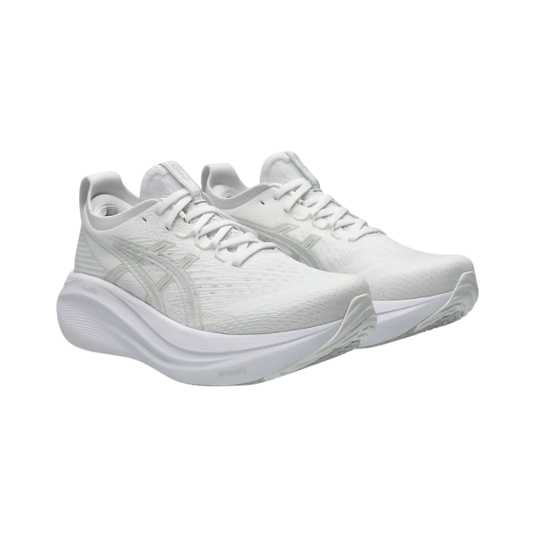 Take your running comfort to the next level with the ASICS Women’s Gel-Nimbus 27 in White/Glacier Grey. Its lightweight build, plush underfoot feel, and supportive design make it an ideal choice for everyday training, long-distance runs, or all-day comfort.