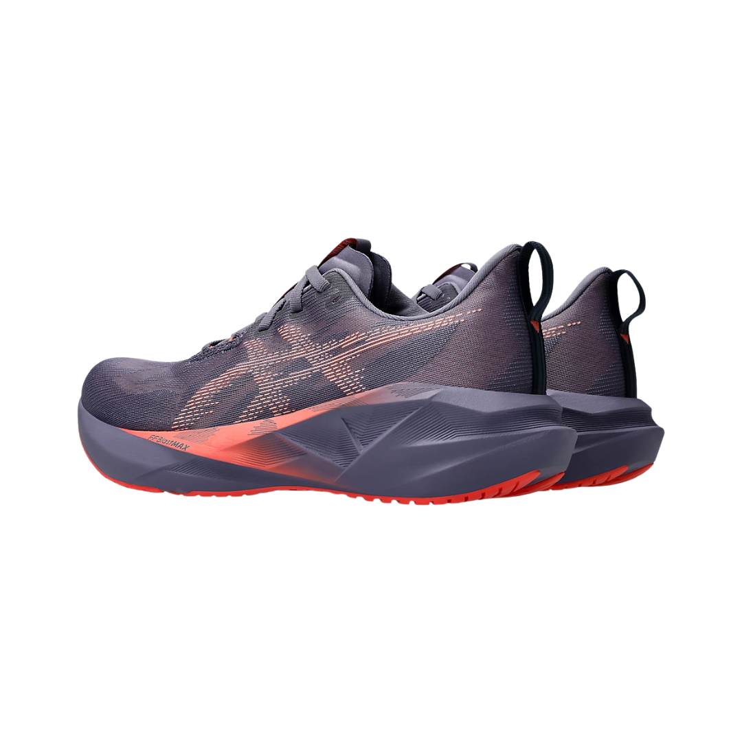 Experience next-level bounce and plush comfort with the Men’s ASICS Novablast 5 in Greyish Purple/Coral Reef, designed for neutral runners who crave responsiveness, durability, and all-day comfort. This lightweight trainer features ASICS’ most advanced cushioning system yet—engineered to deliver a smoother, more energetic stride from start to finish.